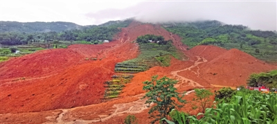 贵州水城特大山体滑坡事故现场。龙杰灵?摄